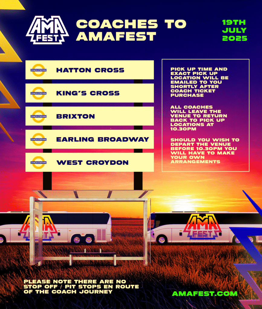 Tickets for AMAFEST 2025 are available now through official partners including Shoobs and Eventbrite, with prices starting from just £41.80. VIP packages and backstage access are also available for fans looking for an upgraded experience.