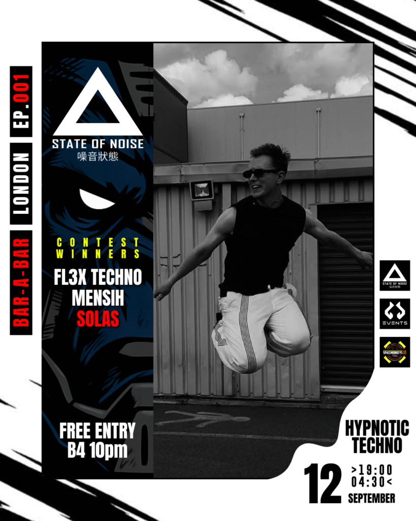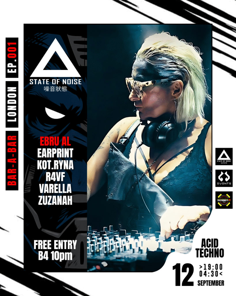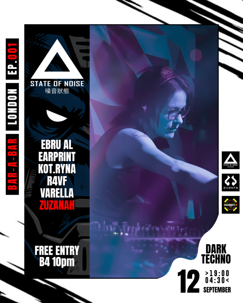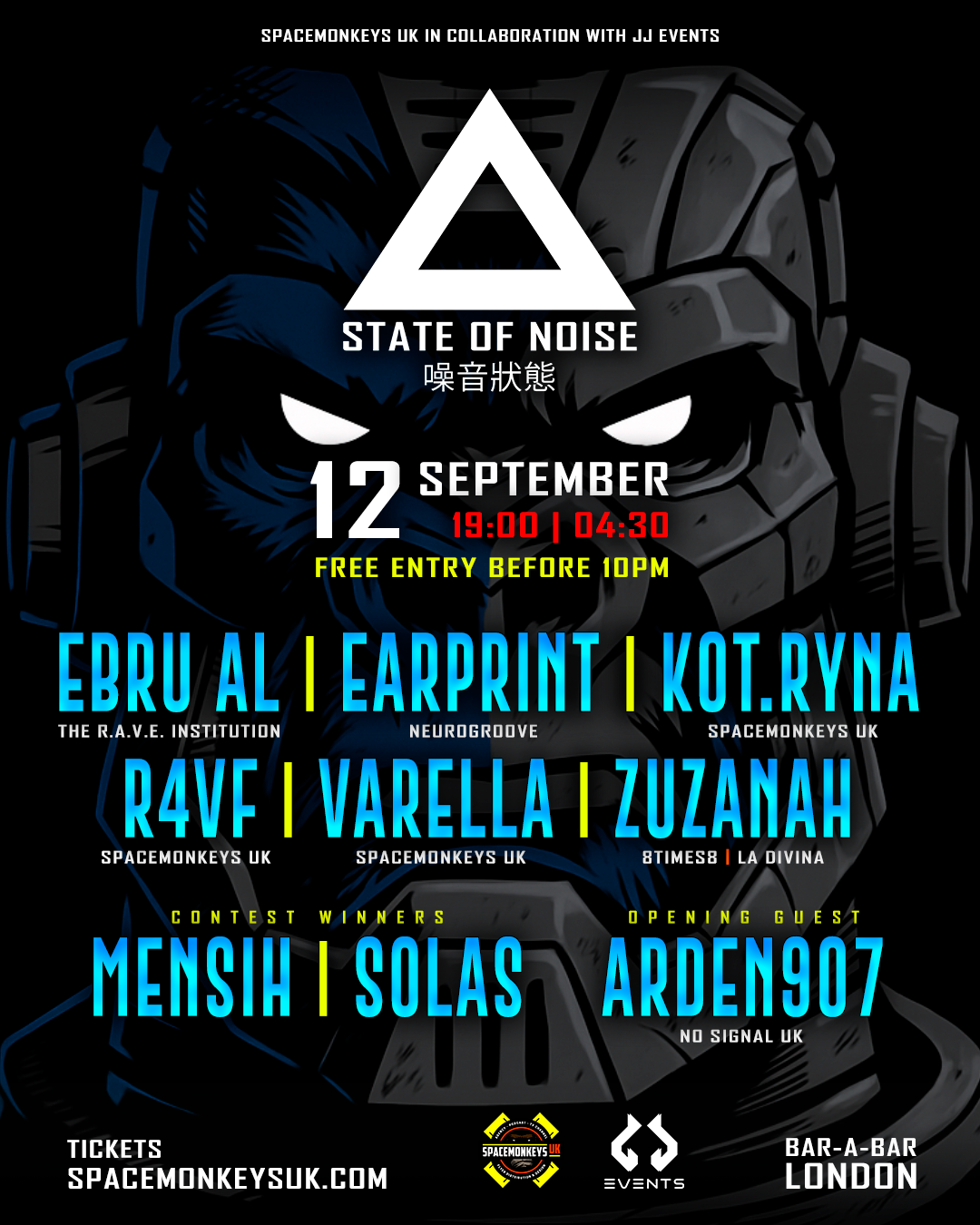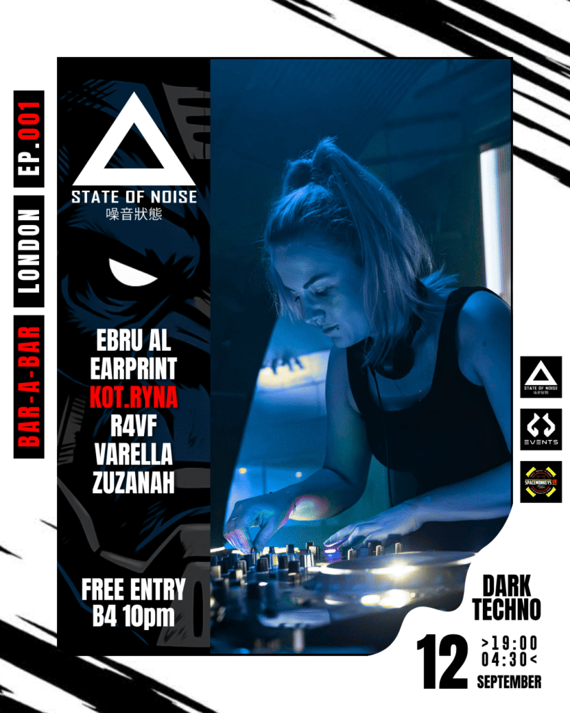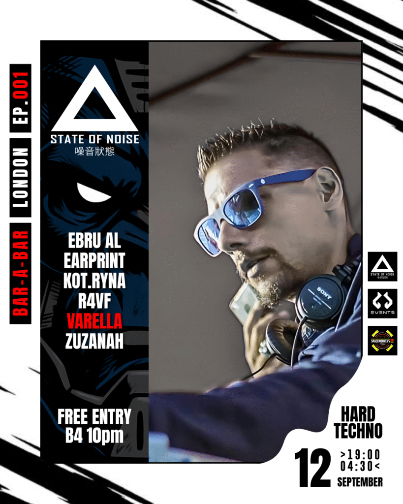 Get ready to dive deep into the raw core of underground techno as STATE OF NOISE lands in London on September 12, 2025, from 19:00 to 04:30. Hosted by Spacemonkeys UK in collaboration with JJ Events, this night promises an all-out assault of rhythm, bass, and dark underground energy.